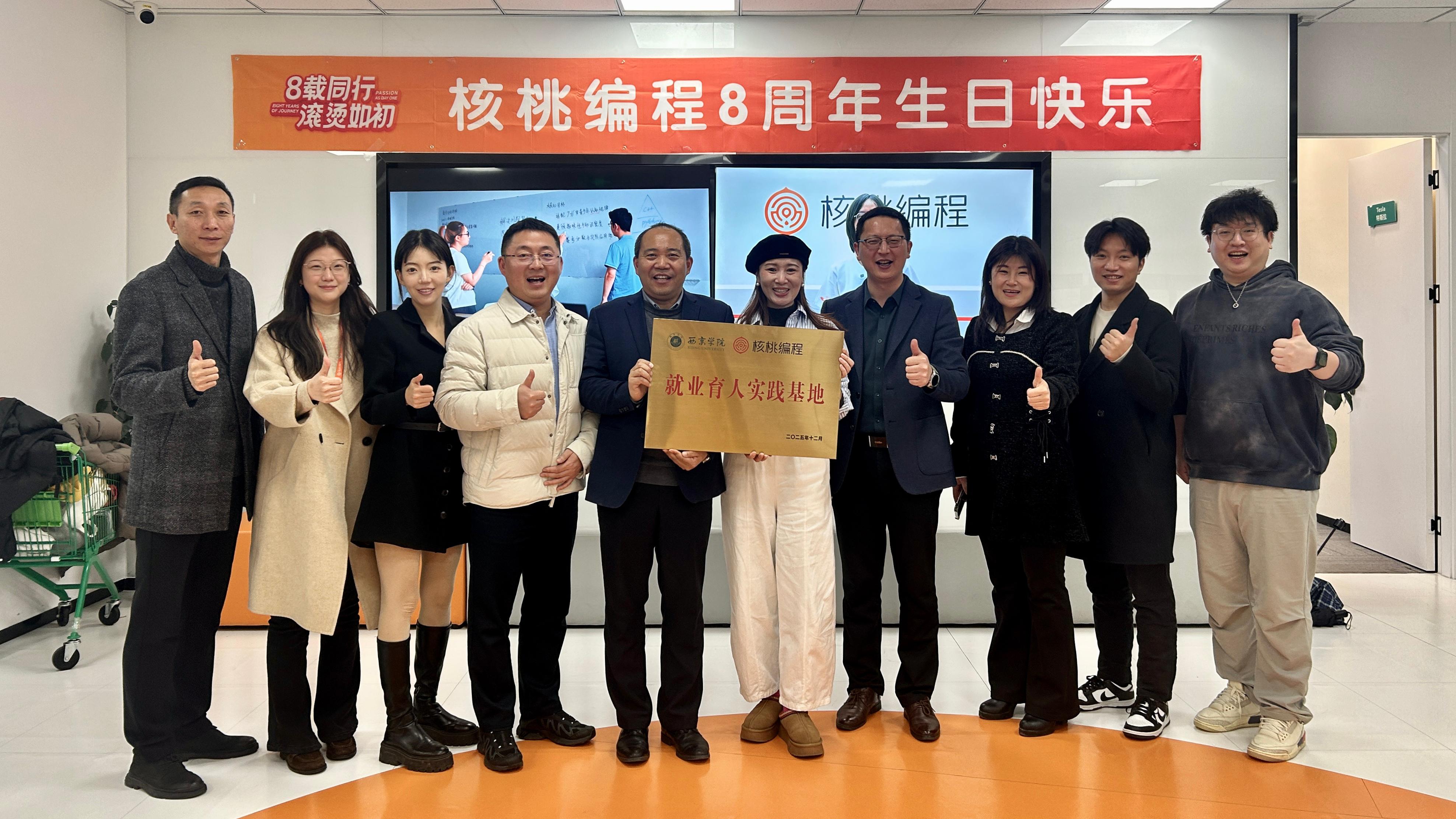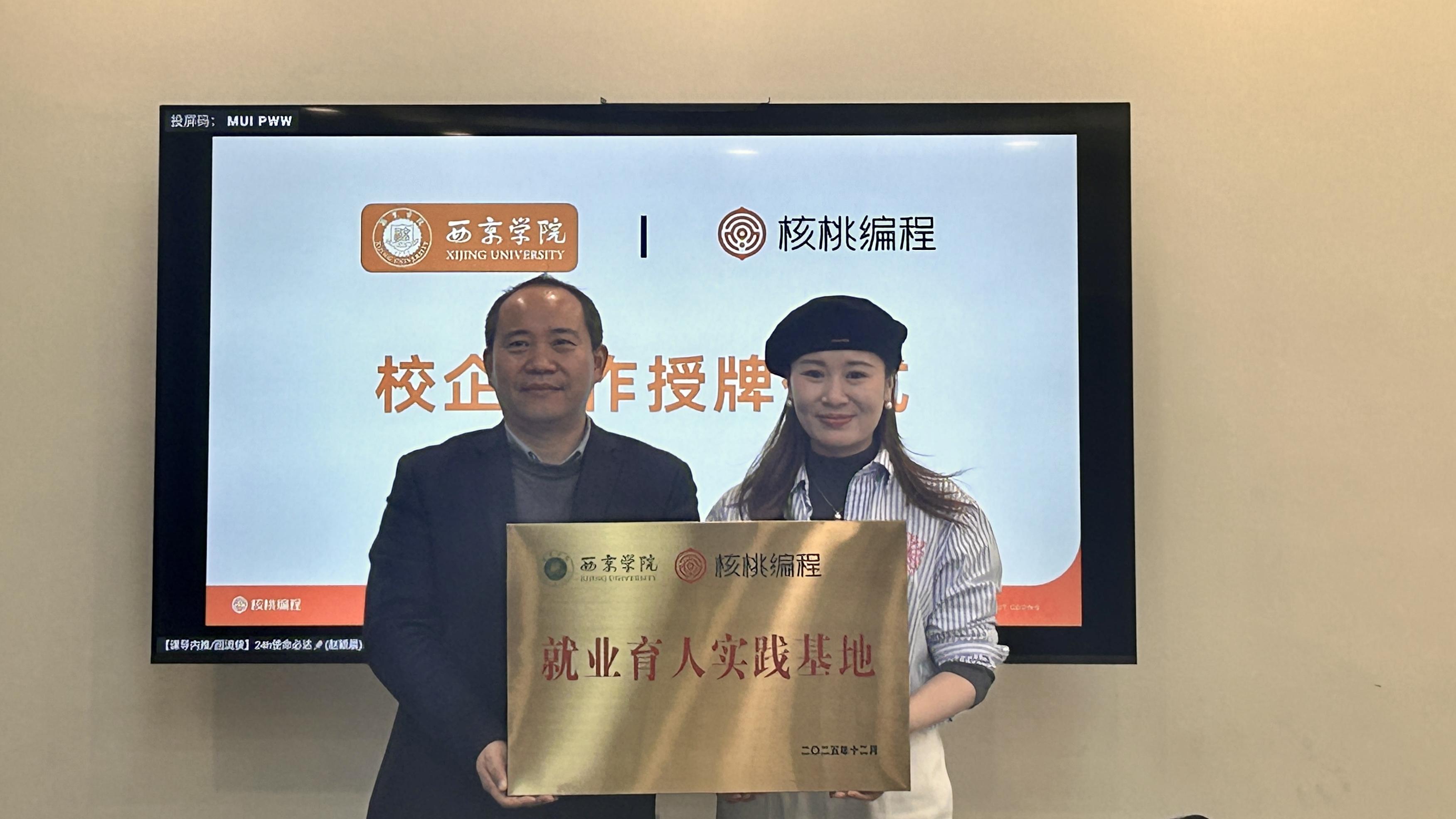 12月12日上午,副校长郭建新带队,大学生创业就业中心主任王君、计算机学院党委书记兼学工副院长童绥勇等一行赴核桃编程西安分公司开展校企合作交流,双方围绕人才培养、实习就业、产教融合等进行深入洽谈,并成功举行“就业育人实践基地”授牌仪式。核桃编程全国课导招聘负责人苗洁、西安负责人王凝携校招团队及西京学院毕业校友代表对学校一行进行了热情接待。